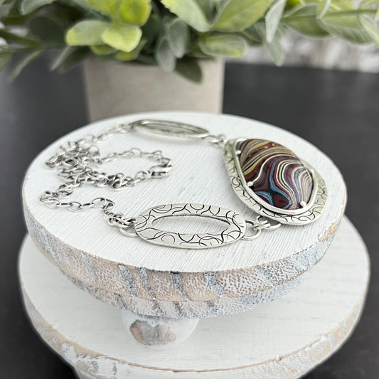 Fordite Necklace with Hand Stamped Centerpiece Links