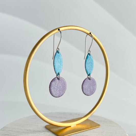 Double Drop Enamel Earrings- Turquoise and Purple