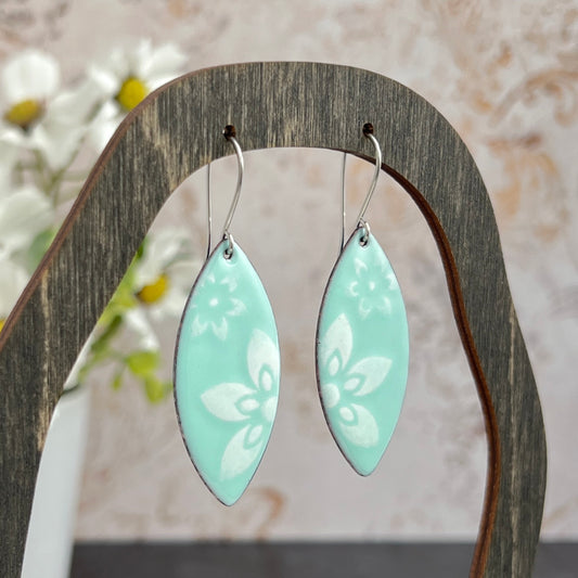 Enamel Marquise Earrings with Stenciled Flowers
