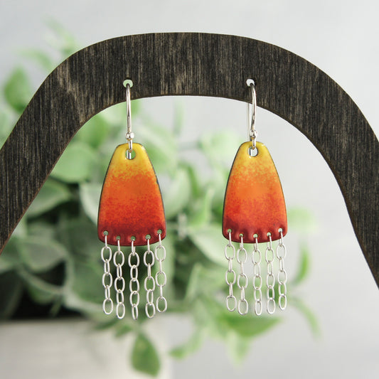 Enamel Earrings with Chain Fringe