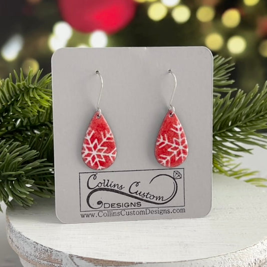 Sterling Silver Teardrop Earrings With Tiny Snowflake Impressions