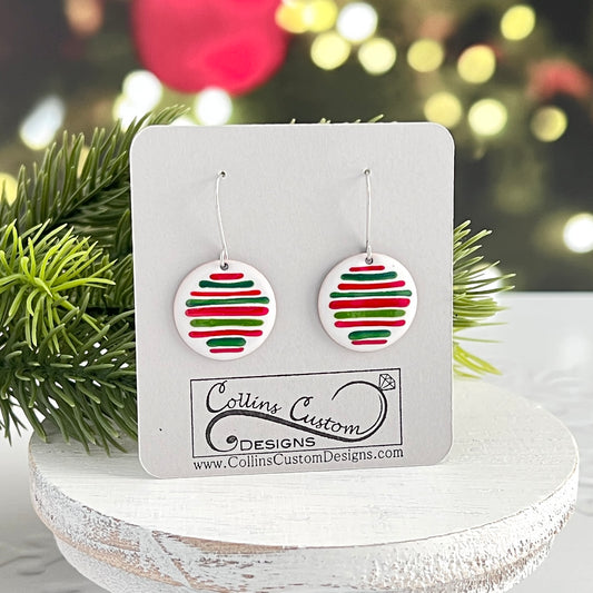 Green Enamel Asymmetrical Earrings With White Partial Snowflakes