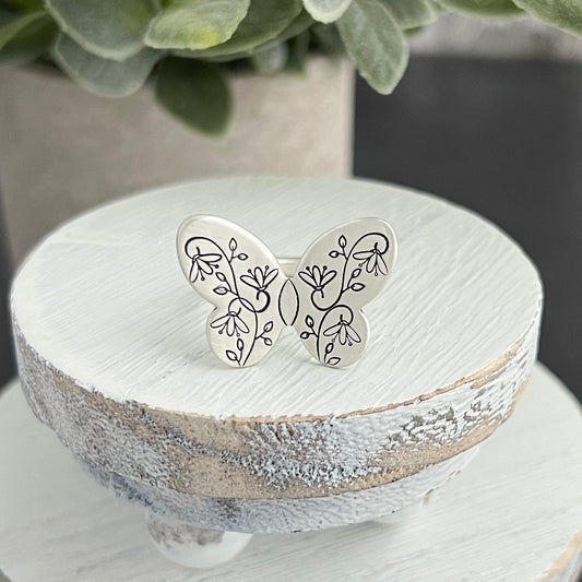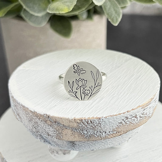 Sterling Silver Mushroom Hand Stamped Oval Ring