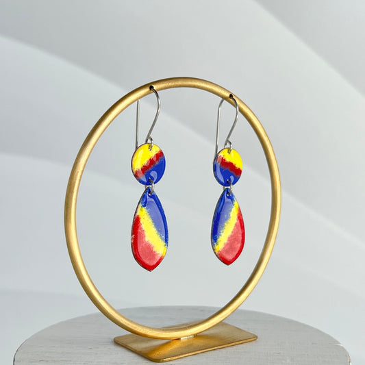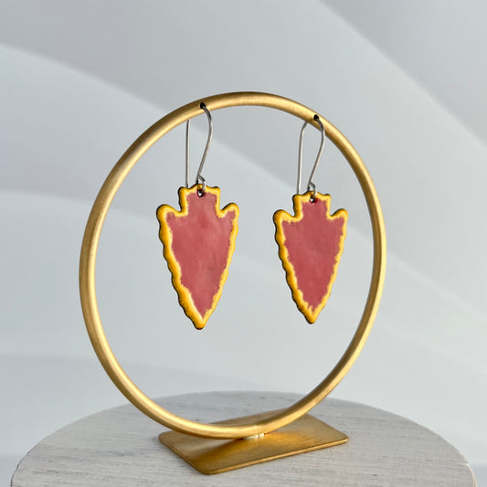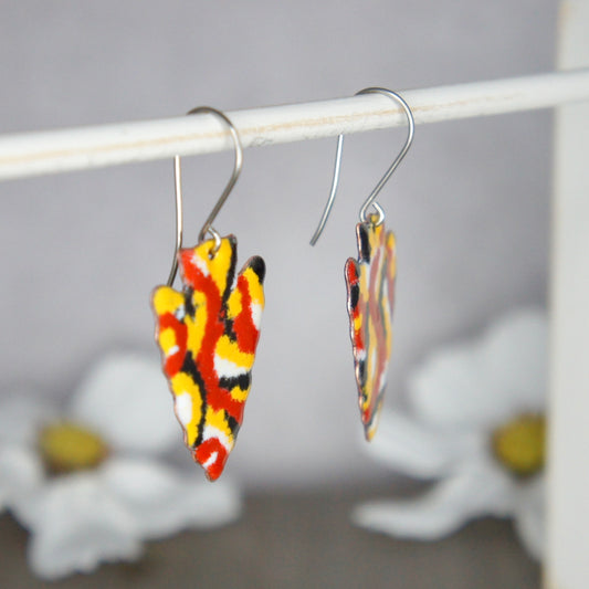Enamel Arrowhead Earrings- Small Red & Yellow