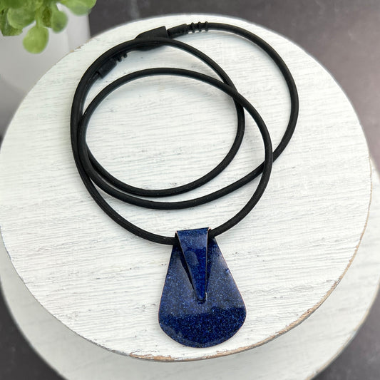 Sterling Silver Paraiba Blue Chalcedony Necklace with Radiant Stamped Border