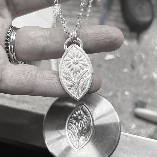 Sterling Silver Enamel Disc Necklace with Stenciled Hearts