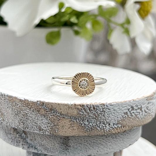 Gold Solitaire Ring with Rose-Cut Moissanite