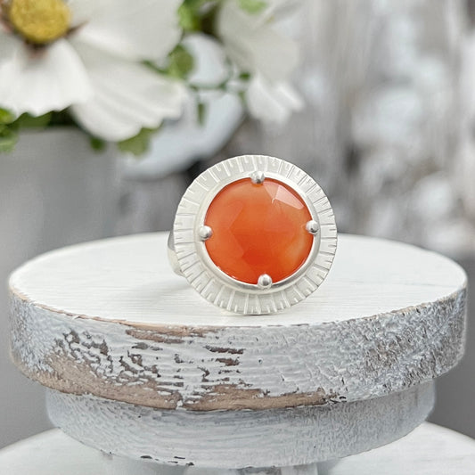 Sterling Silver Carnelian Agate Ring With Stamped Frame