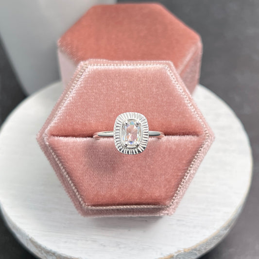 Sterling Silver Cushion Rose-Cut Moissanite Ring