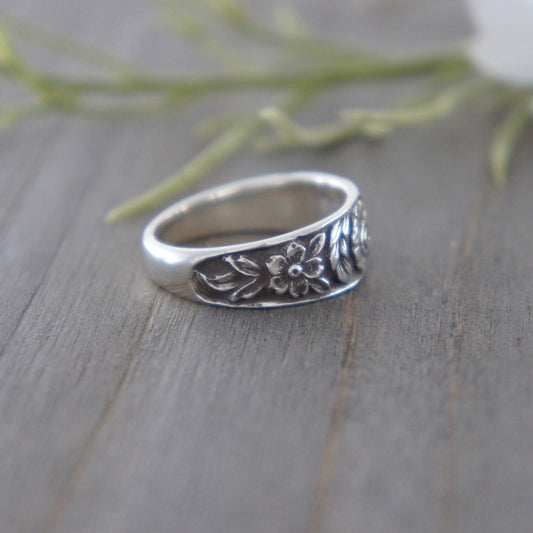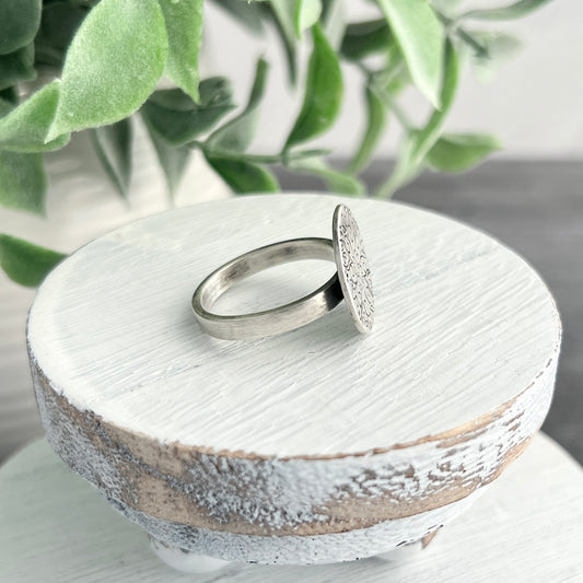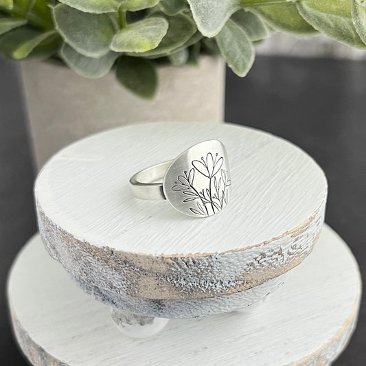 Sterling Silver Floral Hand Stamped Oval Ring