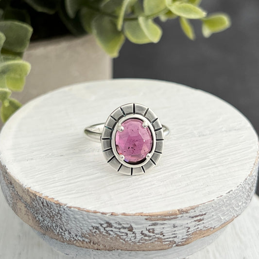Sterling Silver Oval Rose-Cut Rhodolite Garnet Ring