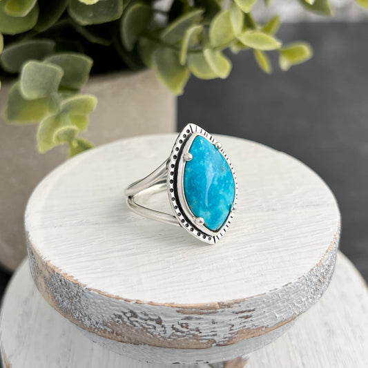 Sterling Silver Marquise Turquoise Ring with Decorative Frame